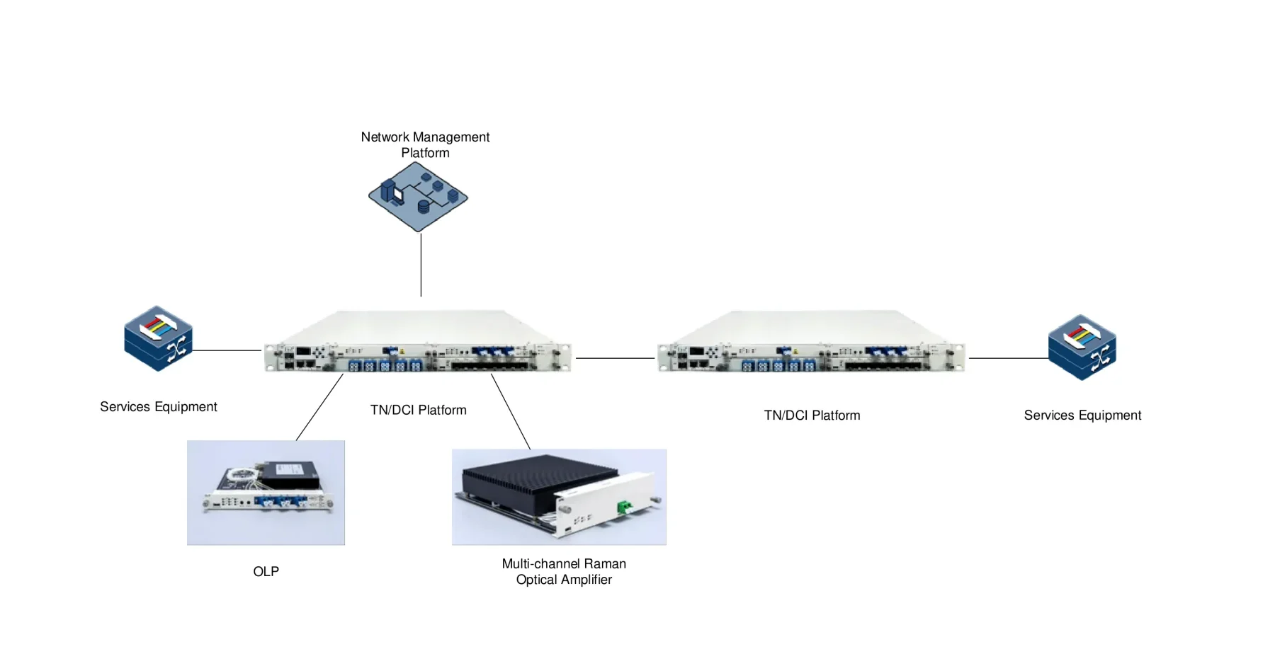DCI Series is a high-speed wavelength division transmission platform specifically designed for data center interconnection applications. This product has an extremely large transmission capacity, is small in size, fully complies with the requirements of data center computer rooms, has low power consumption, is easy to operate and maintain. It is suitable for short-distance business interconnection between data centers as well as long-distance business transmission in the backbone network between data centers.